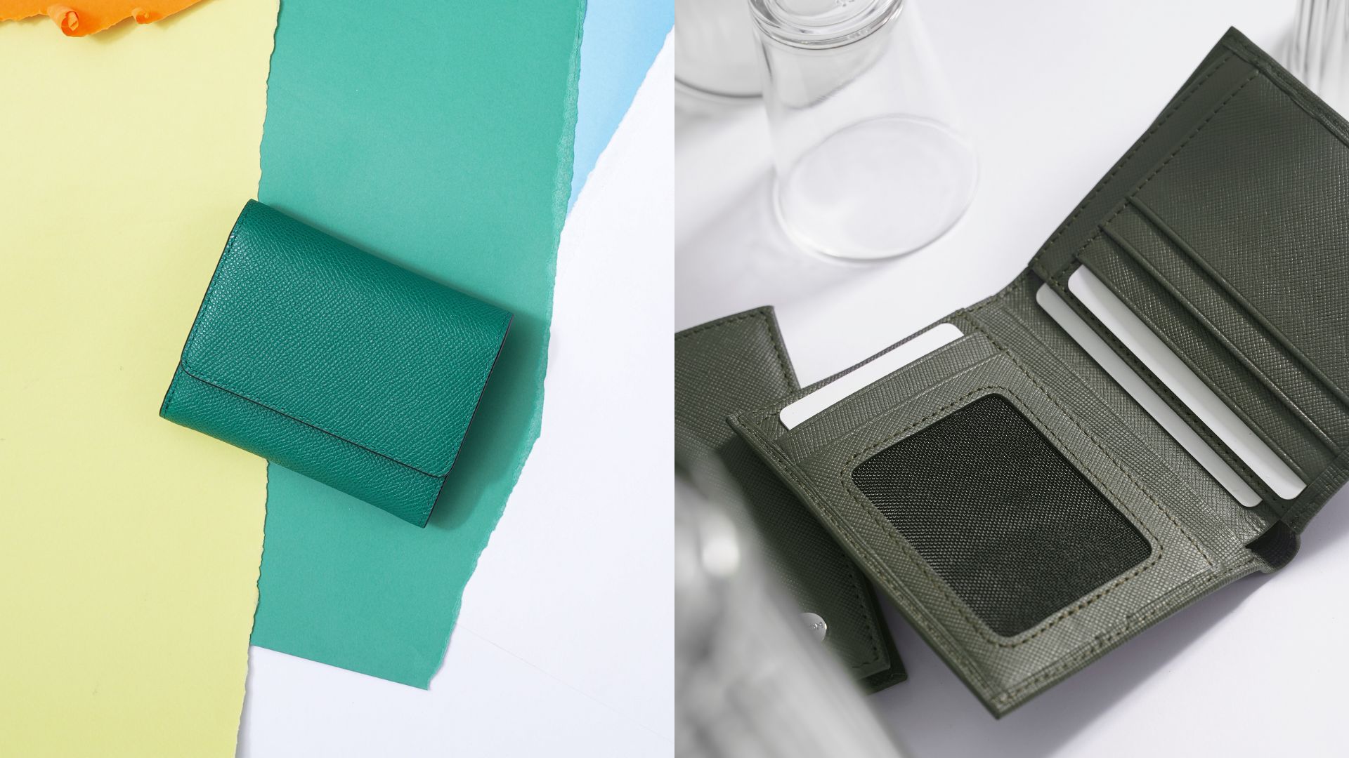 Ví SHE Trifold (trái) và ví Forest Bifold (phải)
