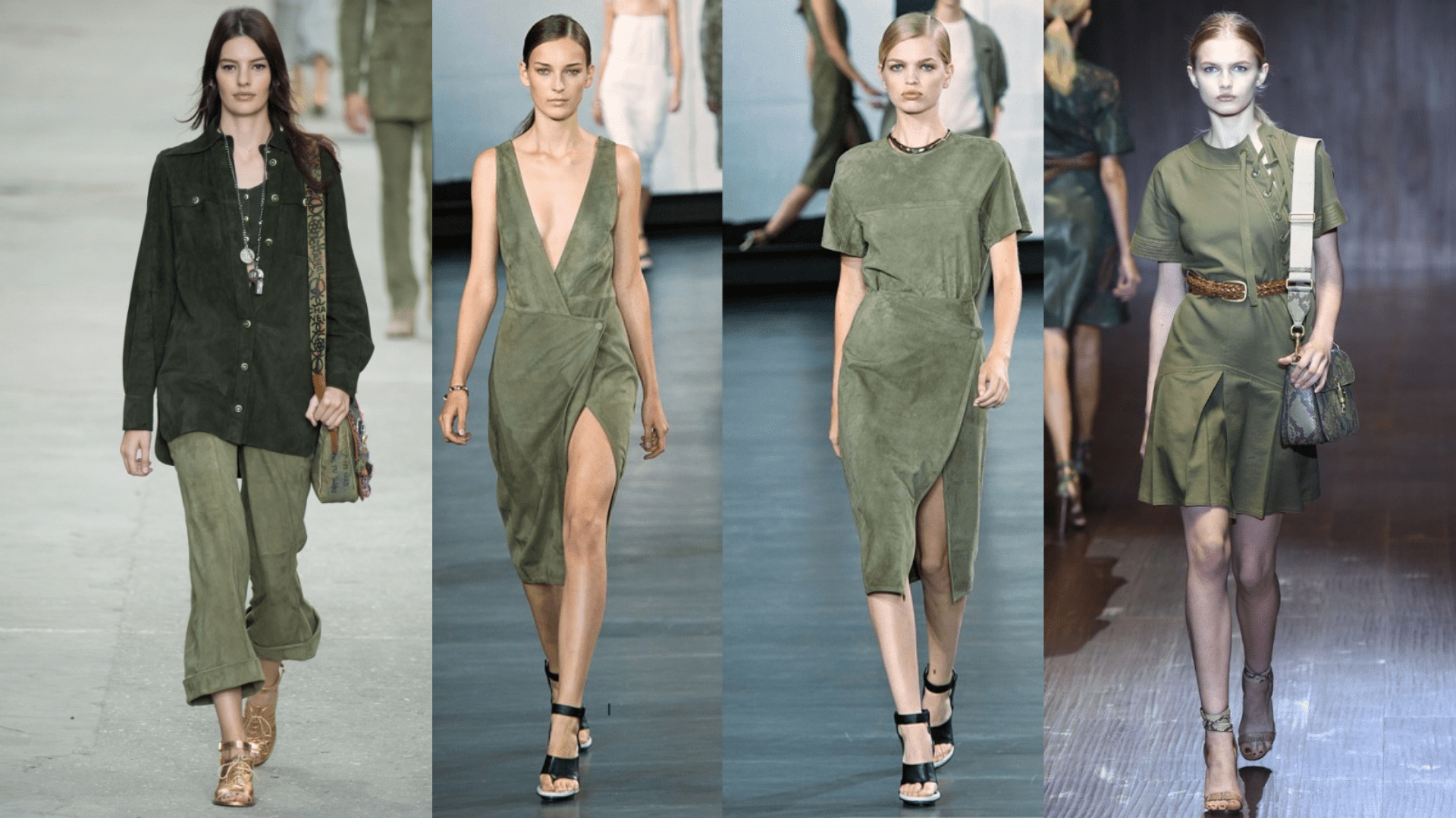 Có thể thấy, sắc Xanh Army đã được các nhà mốt danh tiếng sử dụng trên nhiều chất liệu khác nhau (vải Kaki, da lộn,...)