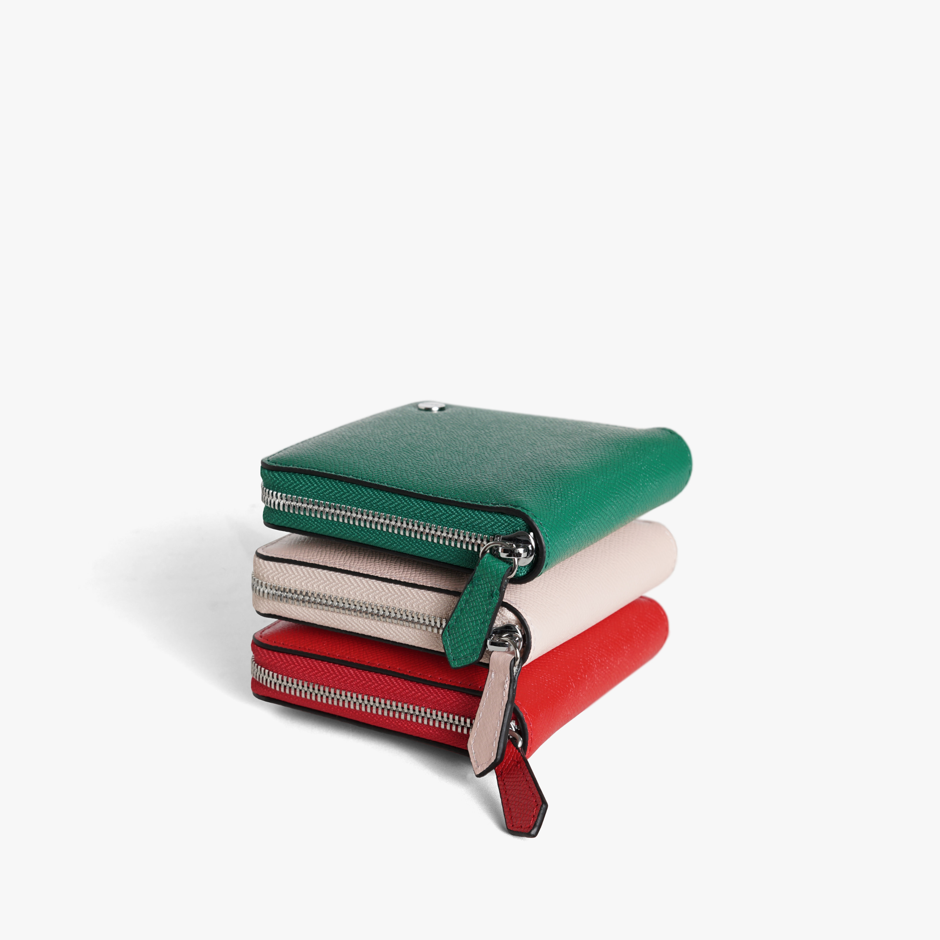 - Màu sắc: Đỏ, Hồng, Xanh Lá - Kích thước: ~ 11 x 11 cm - Chất liệu : Da bò thật 100% - Số ngăn: + 6 ngăn thẻ + 2 ngăn lớn để thẳng tờ tiền + 1 ngăn nhỏ có nút bấm